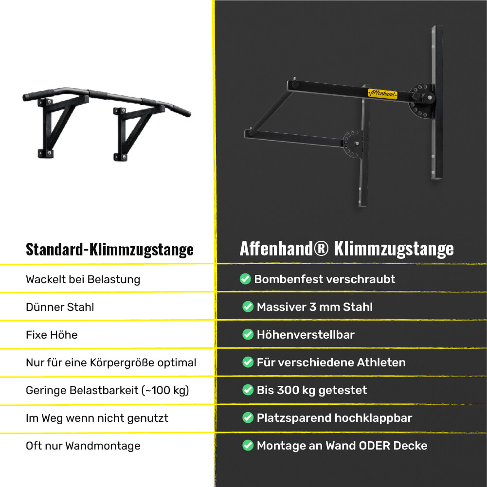 Affenhand höhenverstellbare Klimmzugstange für Homegym – stabile Pull-up-Bar für verschiedene Körpergrößen und platzsparende Wandmontage