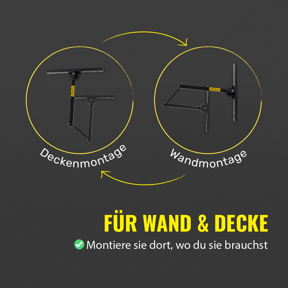 Wir reden hier nicht von einer wackligen Stange aus dem Dicsounter. Unsere Klimmzugstange höhenverstellbar ist aus dickwandigem Stahl gebaut und für brutale Belastung gemacht. Die Wandmontage sitzt bombenfest – einmal montiert, hält sie alles aus, was du ihr zumutest. Ob Kipping Pull-ups, Muscle-Ups oder statisches Hängen mit Zusatzgewicht – das Ding bewegt sich keinen Millimeter.