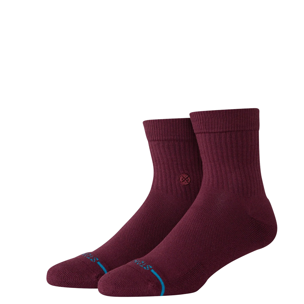 Die Icon Quarter Socken Weinrot sind keine simplen Socken, sie sind dein persönlicher Style-Hack. Das satte Weinrot wirkt edel und gleichzeitig rebellisch, während die moderne Quarter-Länge deinen Look sofort aufwertet. Mittlere Polsterung, Arch Support und nahtlose Zehenpartie sorgen dafür, dass deine Füße sich so wohl fühlen, als würden sie auf Wolken laufen. Zieh sie an und mach jeden Schritt zum Auftritt – von der Straße bis ins Gym.