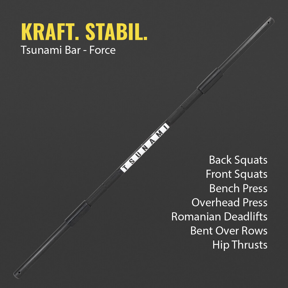 Die Tsunami Bar ist patentiert, massiv konstruiert und für kompromissloses Training entwickelt. Hochwertiger Stahl, sichere Fixierungssysteme und präzise Biegeeigenschaften sorgen für ein kontrolliertes, aber gnadenlos effektives Gefühl. Sie kombiniert Instabilität mit Belastbarkeit, und genau das macht sie so genial. Dieses Tool zwingt dich, besser zu trainieren, statt nur schwerer zu laden. Too much? Genau richtig. Wer damit arbeitet, trainiert nicht nur Muskeln, sondern Kontrolle, Fokus und echte Leistung.
